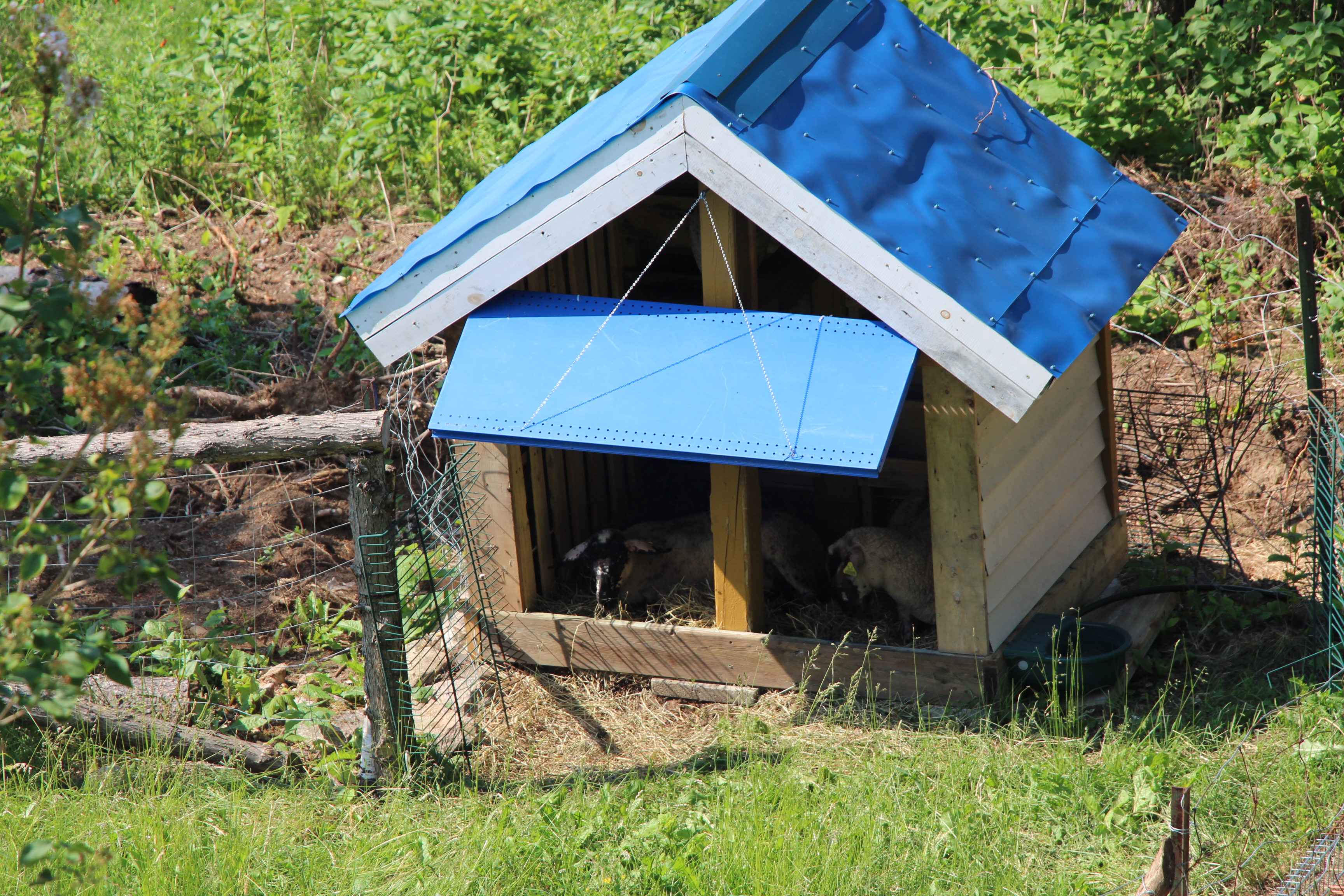 Auberge ewes resting in their shelter from the sun