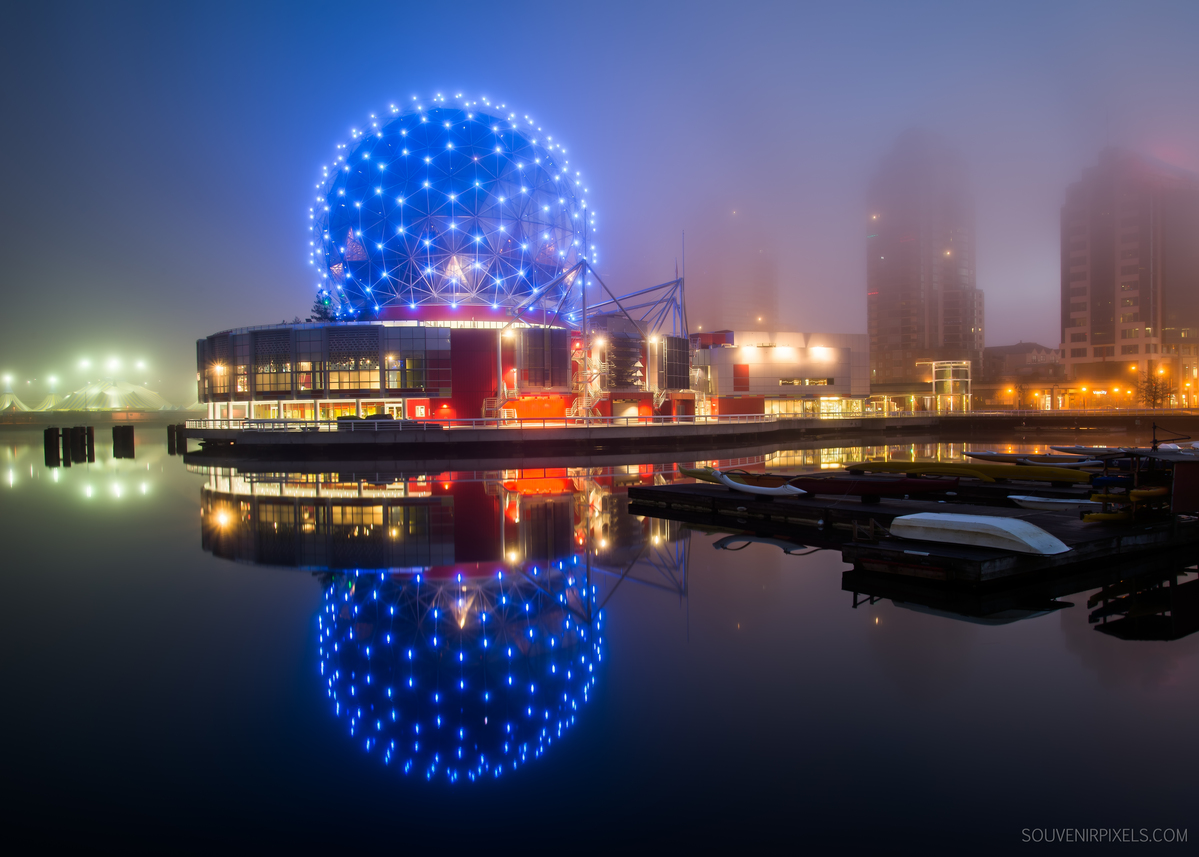 Great shot of the famous Science World with the tops of the nearby condos hidden in the fog. If you haven't visited for a while, the latest featured exhibition is the "Science of Sports". Thanks James!