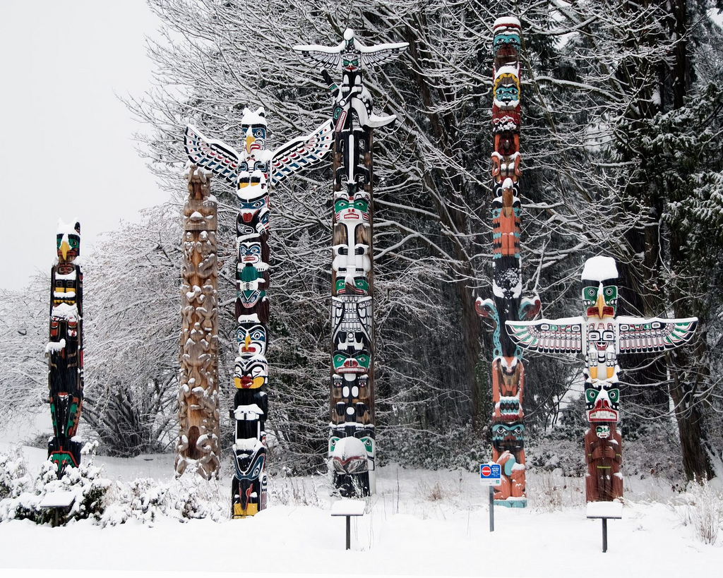 The nine totem poles at Brockton Point are a popular tourist attraction not only in Vancouver, but in all of BC! Four of the original totems were from Alert Bay on Vancouver Island; additional pieces were from the Queen Charlotte Islands and Rivers Inlet on the central coast of BC. The originals have been sent to museums for preservation, the totems you see at Brockton Point today are commissioned or loaned to the park between 1986 and 1992. Thank you for this great winter shot, Dennis Crabtree!