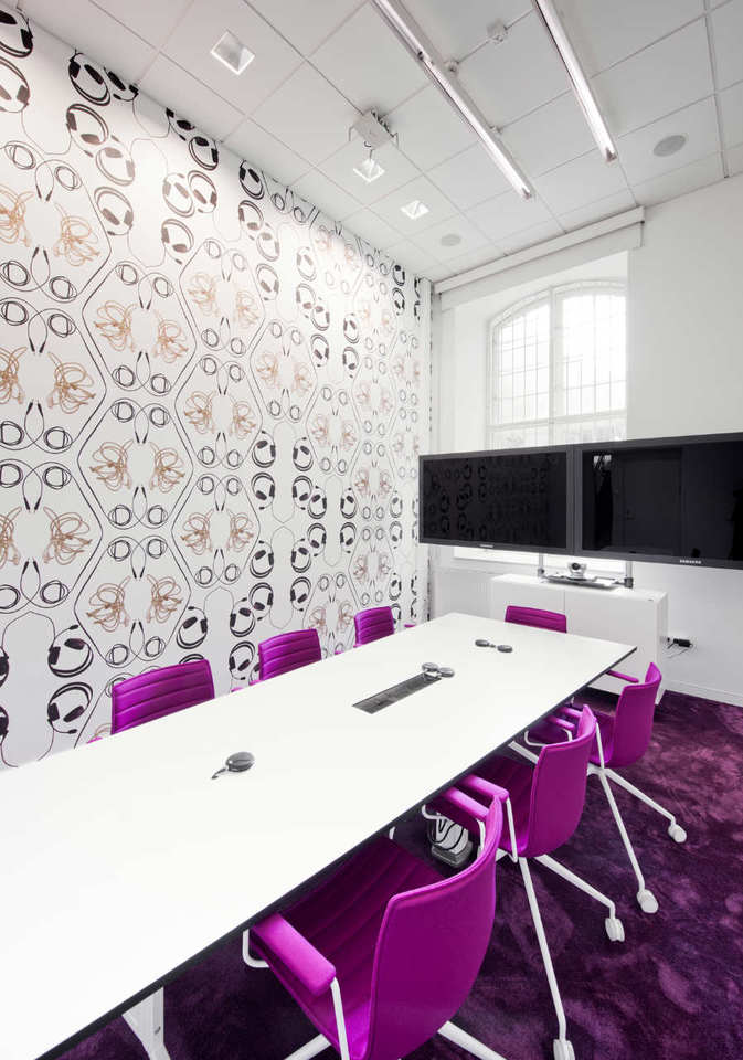 The Stockholm-based architectural firm PS Arkitektur designed the new Swedish office for Skype. The project consists of audio and video studios, offices, and social areas for 100 employees.The idea of the bubbly motif has evolved from the Skype logo cloud and can be found on everything in the office, from furnishings to decorations. Unlike other offices, at Skype, every space needs to have certain technical qualities since the majority of the work focuses on audio and video development. This focus is visible in the interior design as well. The use of unique wallpapers with prints of cables, earphones, and other devices nicely completes the bigger picture.