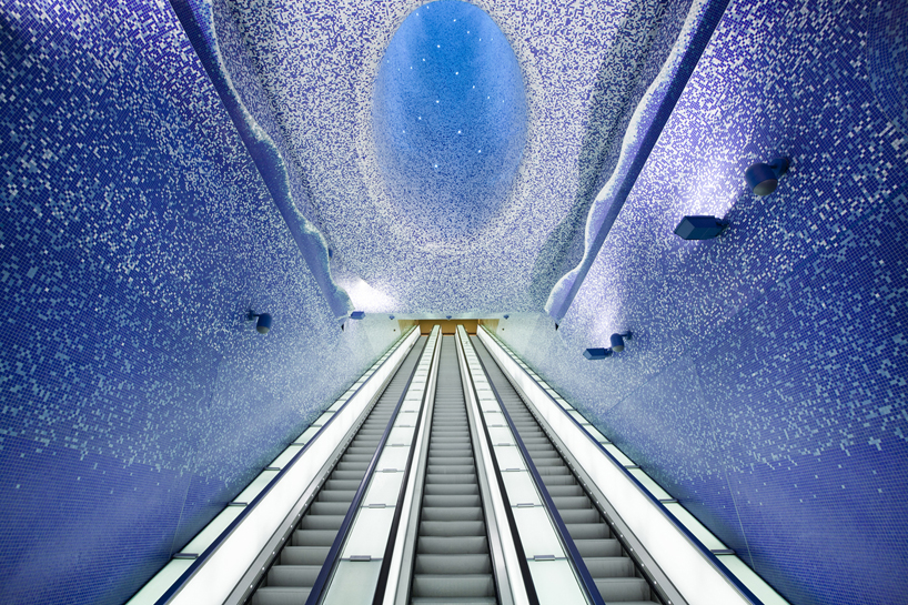 Opened in September 2012, Toledo subway station is one of Europe’s newest metro stops. It's also one of the deepest, at 50 metres below street level. Designed by Spanish firm Oscar Tusquets Blanca, this station was modelled after water and light. Just below street level, transit users immerse themselves in what almost seems to be an art museum. Intricate tile mosaics adorn the walls, blue-tinted skylights and spotlights cover the ceiling, and reflective steel-covered staircases lead passengers to the terminal’s turnstiles. Visitors are then taken down into the station’s depths via glass-framed steel escalators that are bathed in a bluish glow. As you descend to the bottom level, you'll feel as if you’re diving deeper and deeper into a Mediterranean sea, surrounded by aquatic-themed walls and glass panels. This subway station earned the distinction of being one of the only Metro Art stations in Europe.