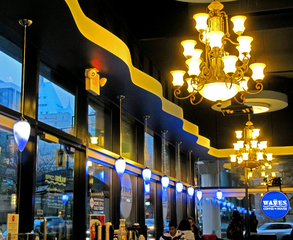Vancouver loves its coffee! It seems there are nearly as many coffee shops as there are people, and each of them seems to be doing good business. In a world where it's hard to tell one coffee shop from another, it's important to stand out from the pack. One franchise in Vancouver has set itself apart to be the first big-name coffee house to accept Bitcoins. The Waves downtown at Howe and Smithe is the most spacious location, and perhaps also the most progressive.