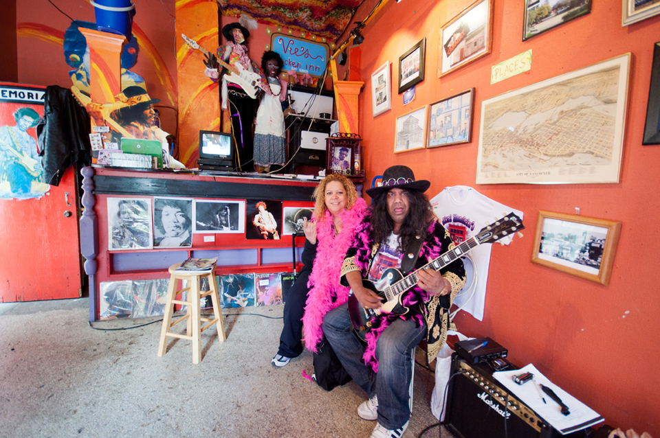 Nora Hendrix, the famous musician's grandmother lived a few blocks from Hogan's Alley, an often overlooked African-American area on the southern edge of Chinatown/Strathcona that was destroyed once the viaducts were constructed. During his boyhood, little Jimi spent many summers there, possibly playing music in the building of the Vie's Chicken and Steak House where Nora worked and which also hosted a number of visiting black performers such as Nat King Cole and Louis Armstrong. Few remnants from the neighbourhood remain after the demolition, but one such landmark was transformed into a peculiar memorial. A couple of years ago Hendrix fans created one of Vancouver's most unique urban curiosities by converting a small red brick building at 207 Union Street, that used to be part of Vie's, into a shrine where you can find old pictures and also several letters of correspondence between Jimi and his Grandmother. Make sure you give generously as this place is kept open by visitor donations only.